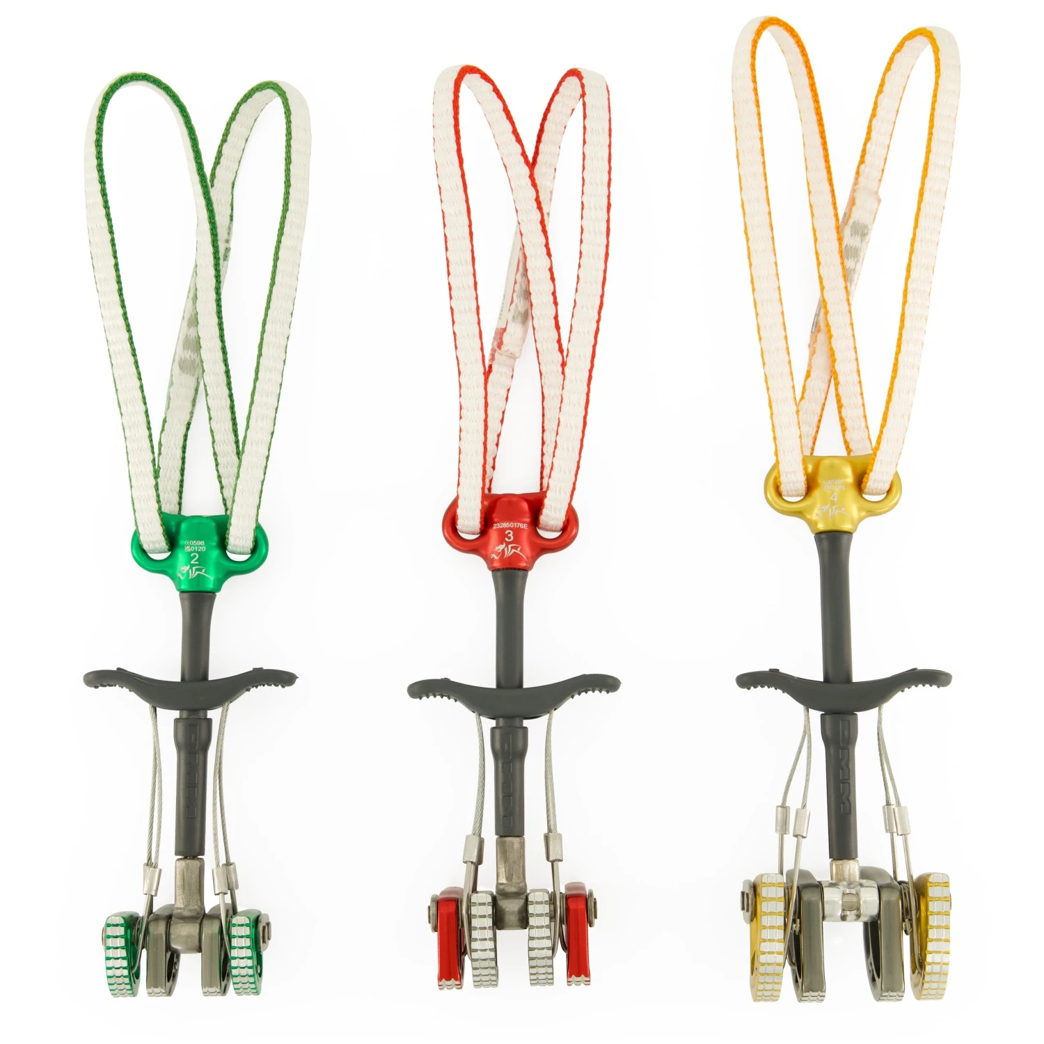 Mit dem Dragon 2 erreicht DMM etwas äußerst seltenes – ein perfektes Produkt nochmals zu verbessern. Der DMM Dragon Cam hat nicht umsonst seit seiner Markteinführung einen festen Platz in der Kletterszene. Alpinisten, Sportkletterer und Tradclimber vertrauen auf die Cams der walisischen Edelschmiede DMM. Egal in welchem Fels man unterwegs ist, ob Granit, Kalk oder Sandstein, dank der Auswahl von acht Größen findet man für seinen Dragon 2 immer eine gute Platzierung. Das Dragon 2 Set ist in drei Varianten erhältlich: für schmale Risse ein kleines Set mit den Größen 00-1, als Set für den Mittelbereich das kleine Set von 2-4 und für eine weite Abdeckung das große Set mit den Größen von 0-5.