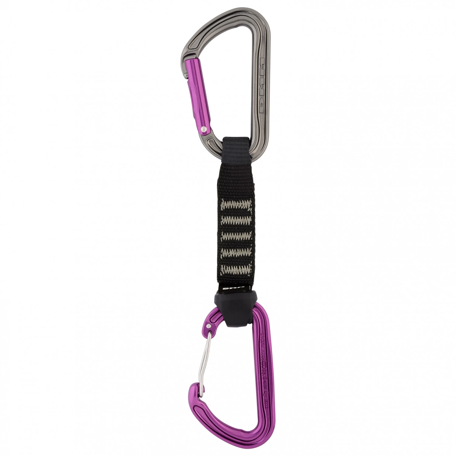 Für den Einsatz am Fels wurde das Shadow/Spectre Hybrid Quickdraw von DMM entworfen. Dieses Express-Set bringt alles mit, worüber man sich in der Wand freut. Ein gutes Handling sowie eine hohe Sicherheit stehen an oberster Stelle. Besonders ist dabei die Konstruktion des Express-Sets. Der obere Karabiner kommt mit einem klassischen Schnapper und kann aufgrund der Keylocknase leicht in die Haken eingehängt werden. Der untere Karabiner hingegen wurde mit einem Drahtschnapper ausgestattet und ist so nicht nur besonders leicht, sondern auch sicher.