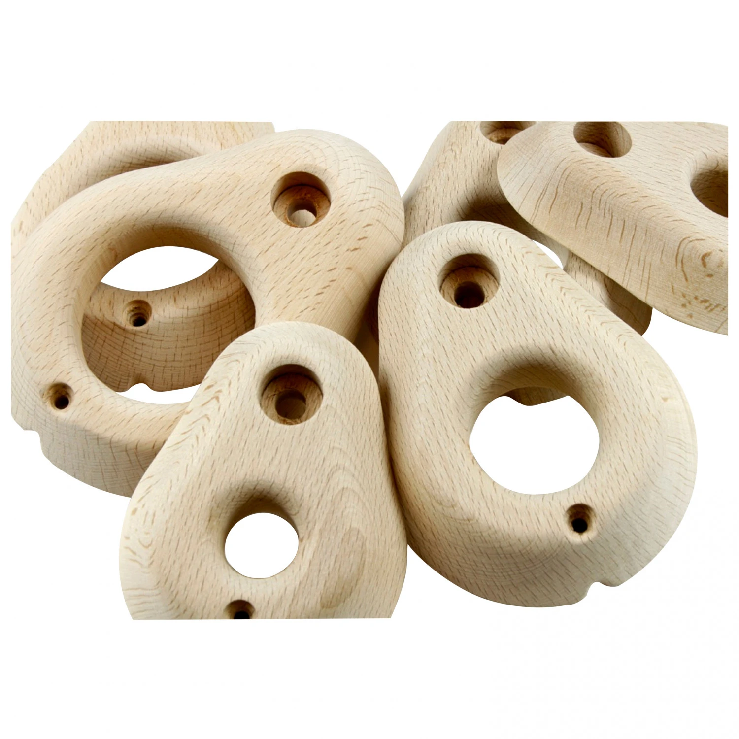 Am Campusboard oder an der Systemwand montiert, bieten Dir die FlatPockets von Workshop 19/50 abwechslungsreiche Trainingsmöglichkeiten, bei denen Du vor allem Deine Finger- und Handkraft verbessern kannst. Die Oberfläche der Holzgriffe ist glatt und fein, um die Haut Deiner Hände beim Training zu schonen. Außerdem ist Holz ein natürlicher und nachwachsender Rohstoff, der im Vergleich zu Kunststoff umweltfreundlicher und nachhaltiger ist. Im Lieferumfang sind sechs Griffe enthalten – jeweils ein Paar in den Größen Klein, Mittel und Groß.
